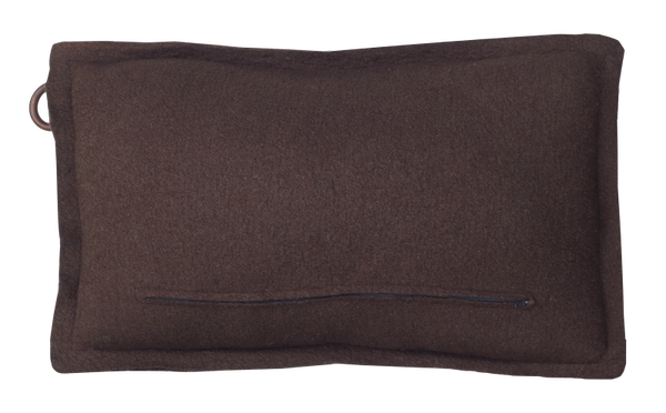 Het kussen met ’70 look is gemaakt van mooie gekookte wollen stof met een decoratieve houten ring aan de zijkant. De stof van de achterzijde is gemaakt van dezelfde stof met rits.