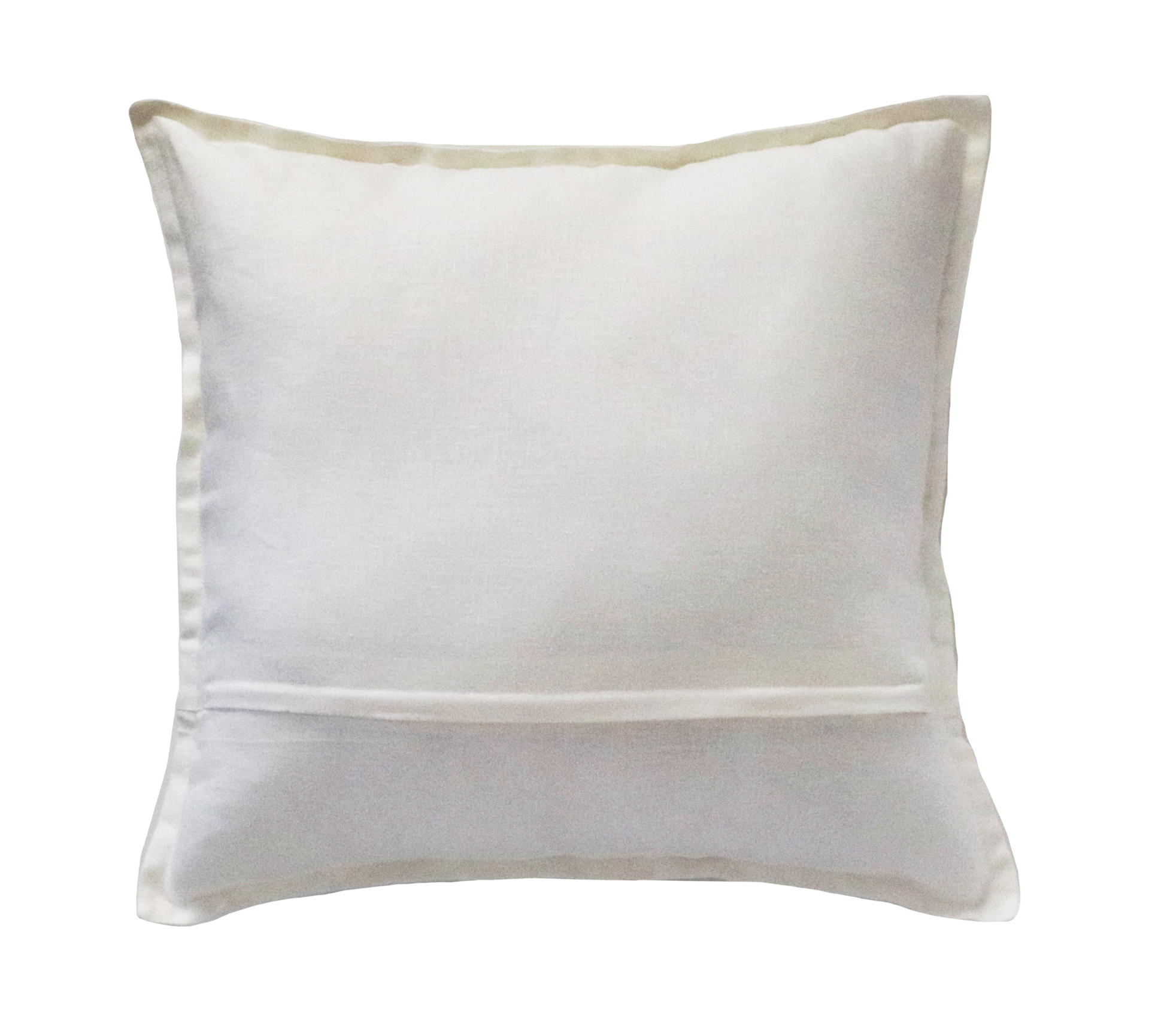 Het kussen is gemaakt van een grove linnen stof met doorgestikte naden aan zijkant.